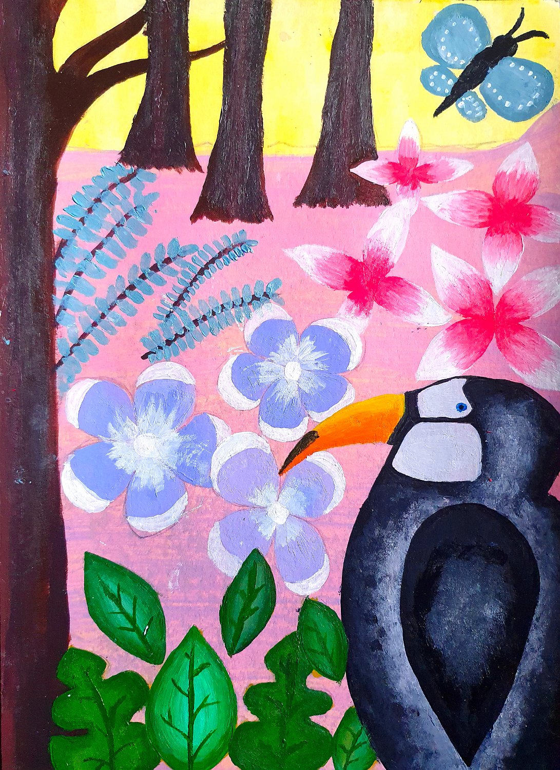 Tamsin H Age 13 Rainbowforest Acrylic-on-A5-Paper