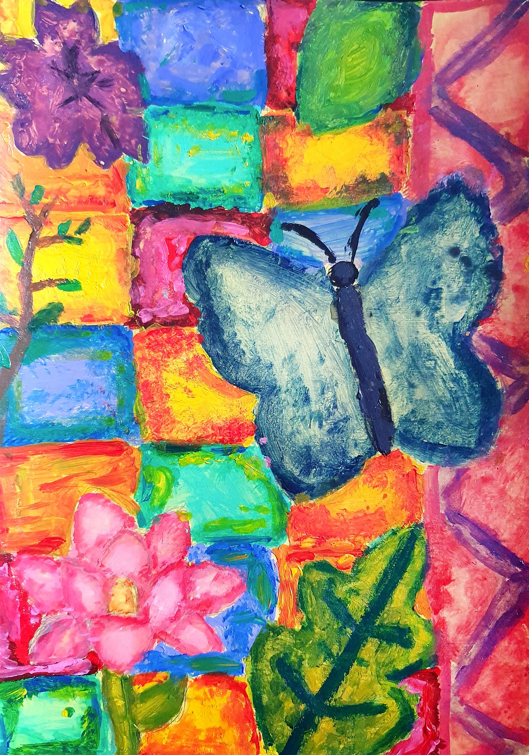 Sophia. Year 8. Great sankey high school. Warrington. Uk. Acrylic on card