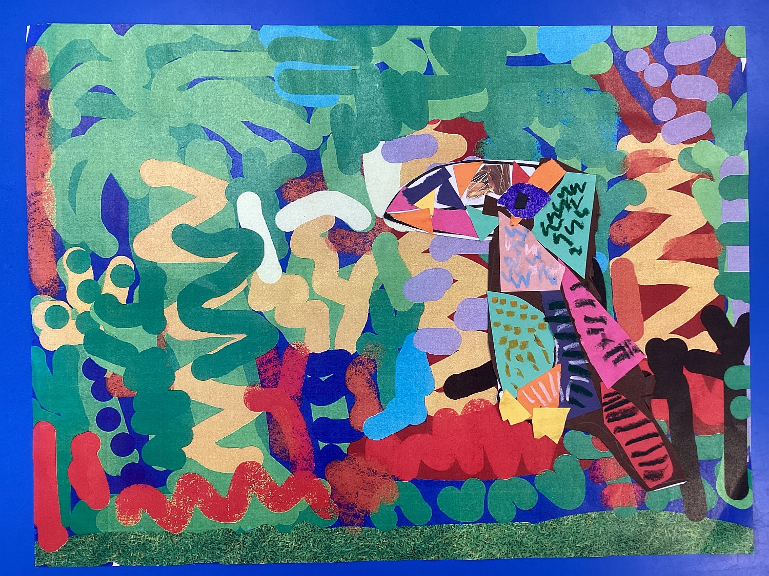 Albert Merritt age 7, Trythall school, Cornwall, Toucan in the rainforest, ipad drawn background and collage toucan