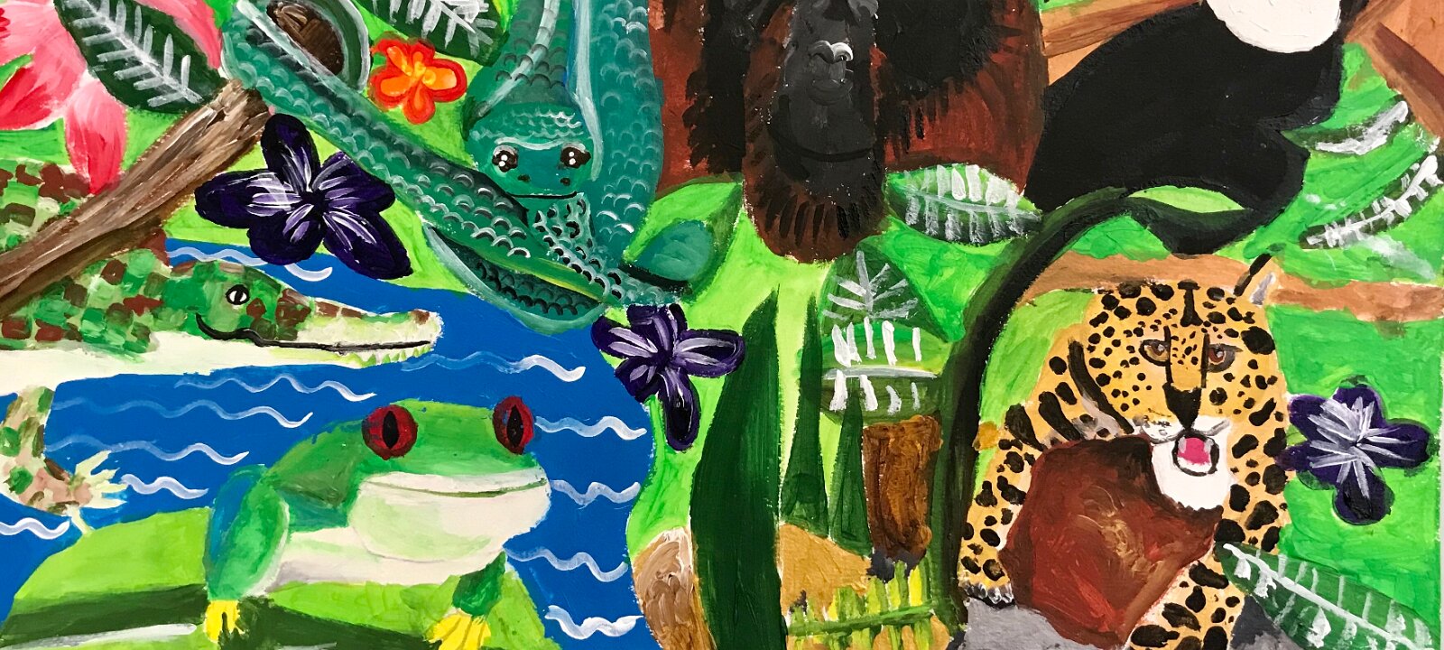 CorinnavLee-age-5-Animals-in-rainforest-A4-acrylic-on-paper-Learning-Habitat-kindergarten-in-Hong-Kong-China