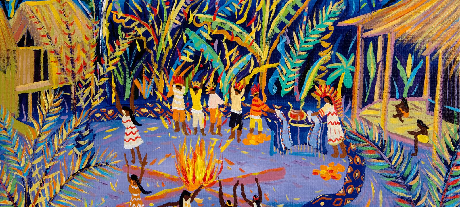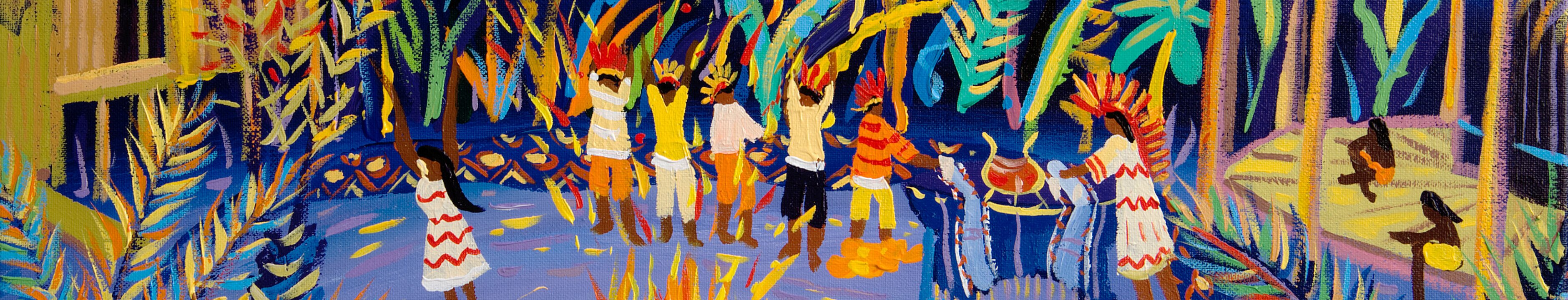 Tribal Ceremony. Painting by John Dyer. 24 x 24 inches acrylic on canvas