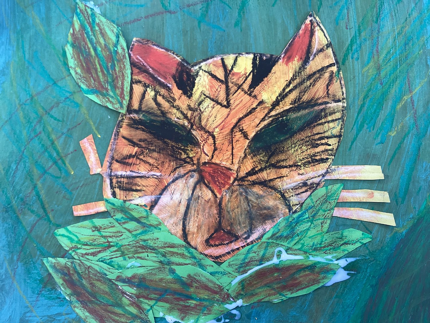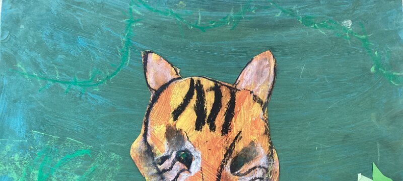 Indie-Rose Cooper 7 Tiger in India, Trythall School, Cornwall. Mixed media