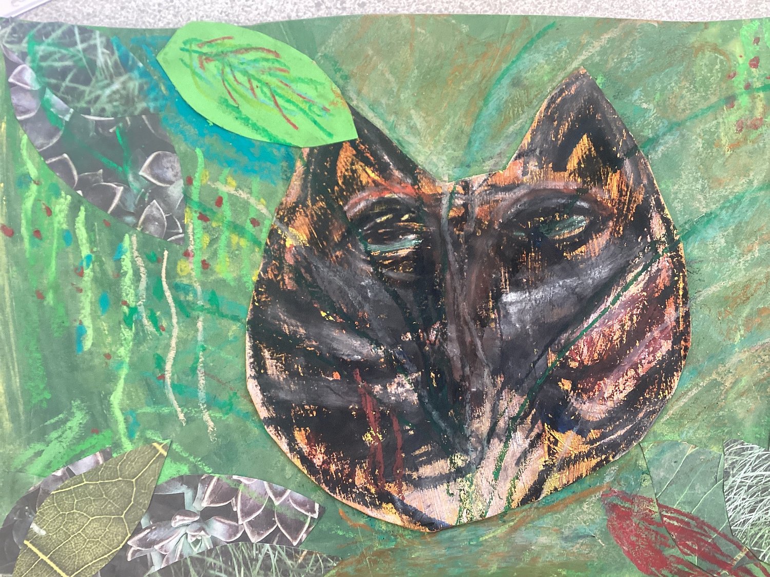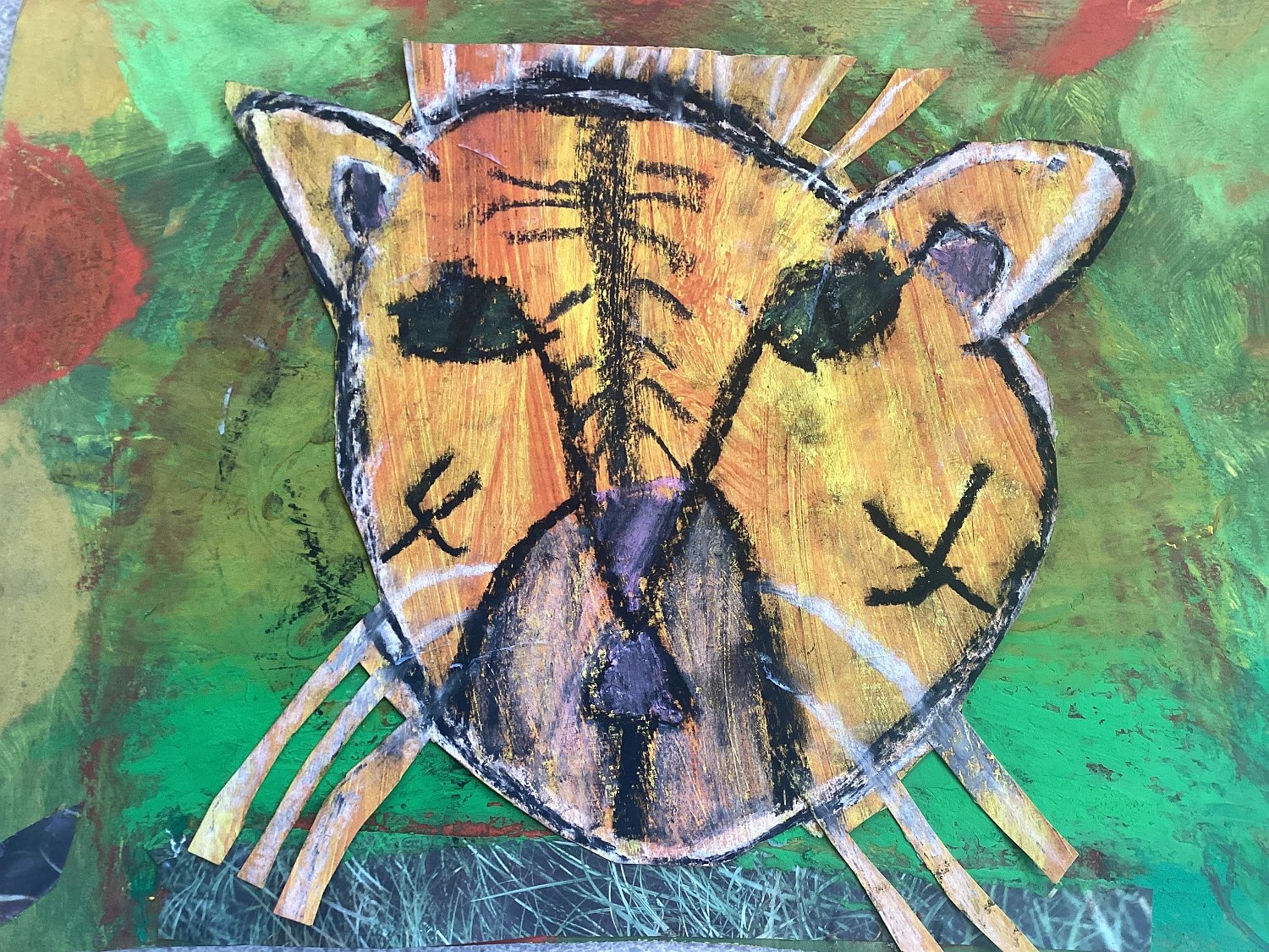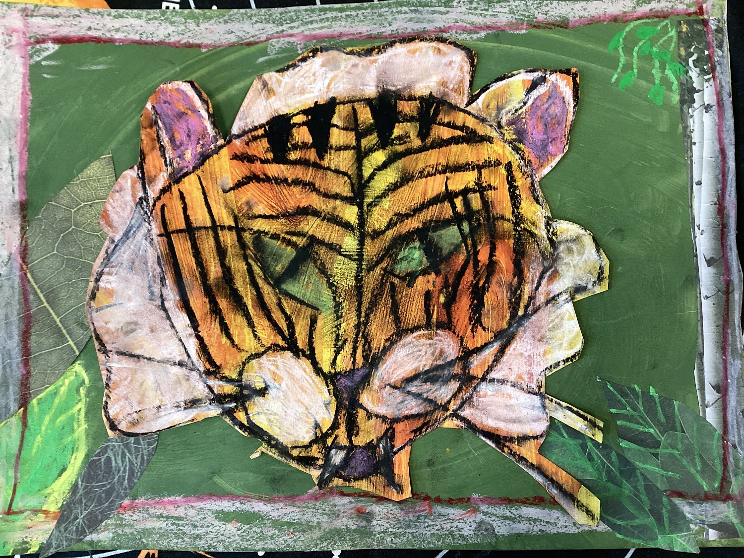 Indie-Rose Cooper 7 Tiger in India, Trythall School, Cornwall. Mixed media