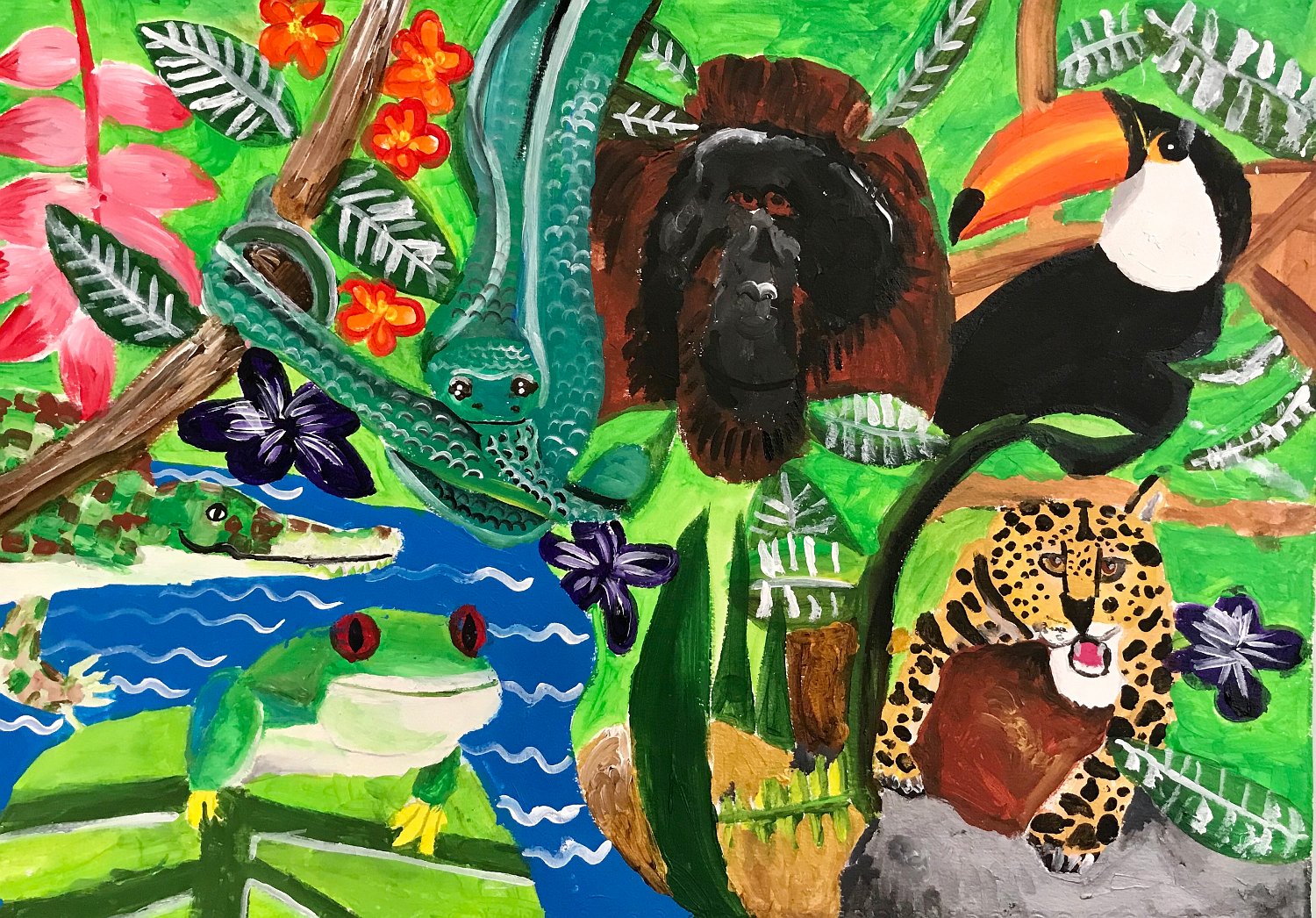CorinnavLee-age-5-Animals-in-rainforest-A4-acrylic-on-paper-Learning-Habitat-kindergarten-in-Hong-Kong-China