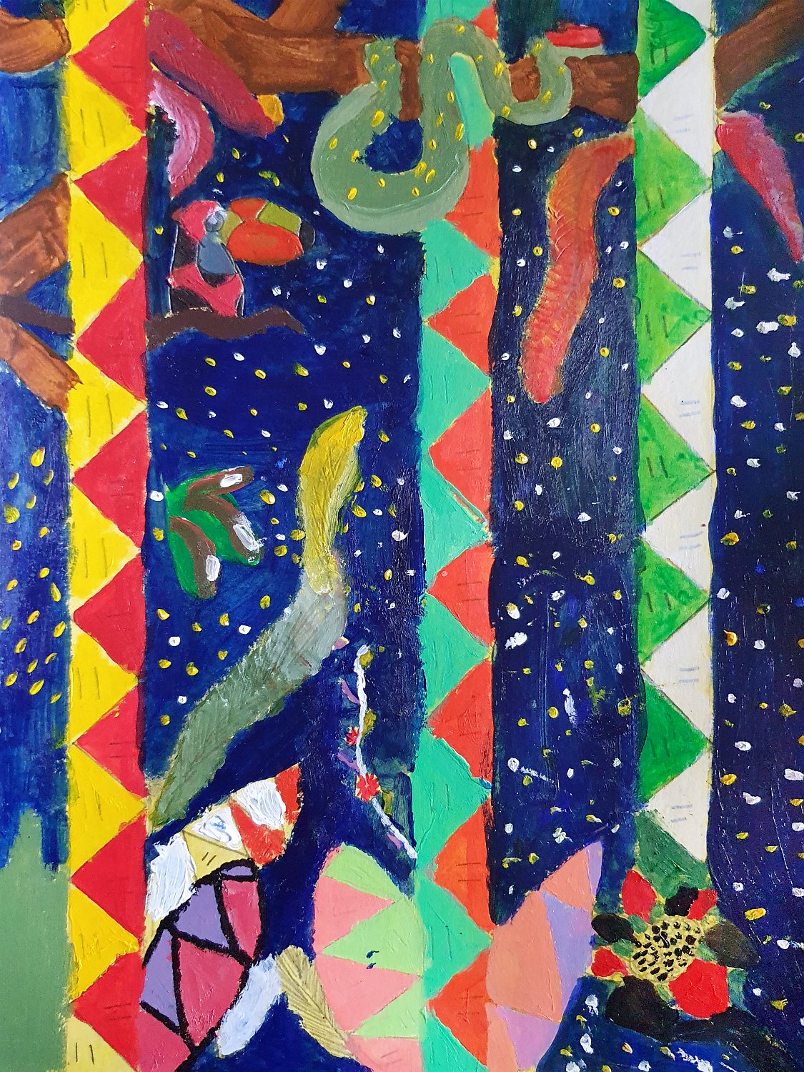 James. Year 8. Great Sankey High School. Warrington. UK. Acrylic on card.
