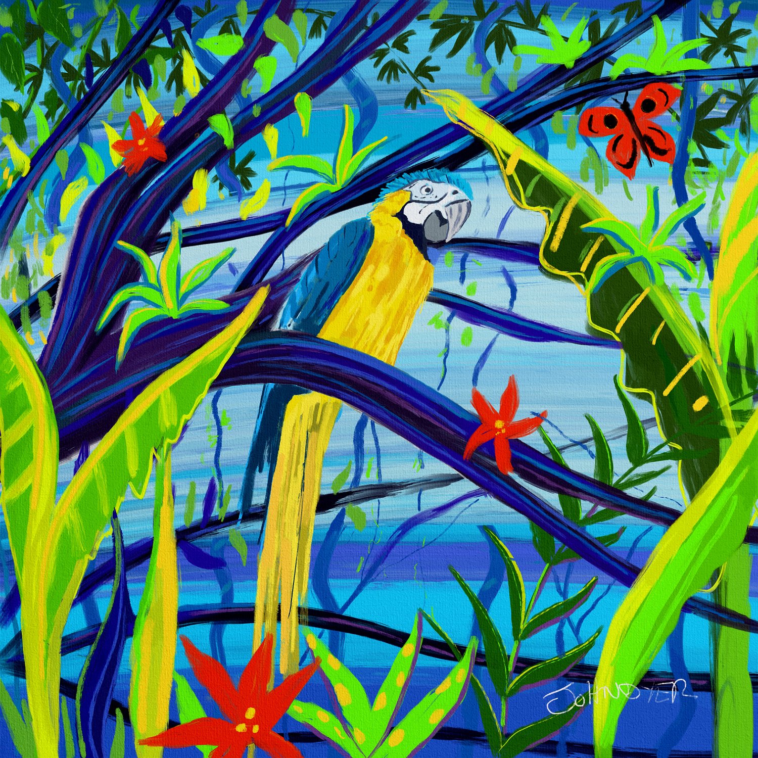 Rainforest Parrot. Procreate digital painting by John Dyer