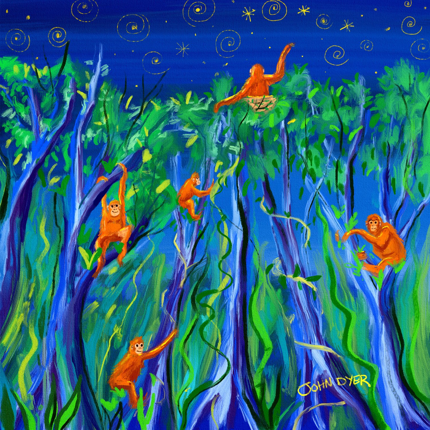'Person of the Forest' iPad drawing using Procreate by artist John DyerOrangutan 1Orangutan 2Orangutan 3Orangutan 4Orangutan 5 Acrylic Paintings