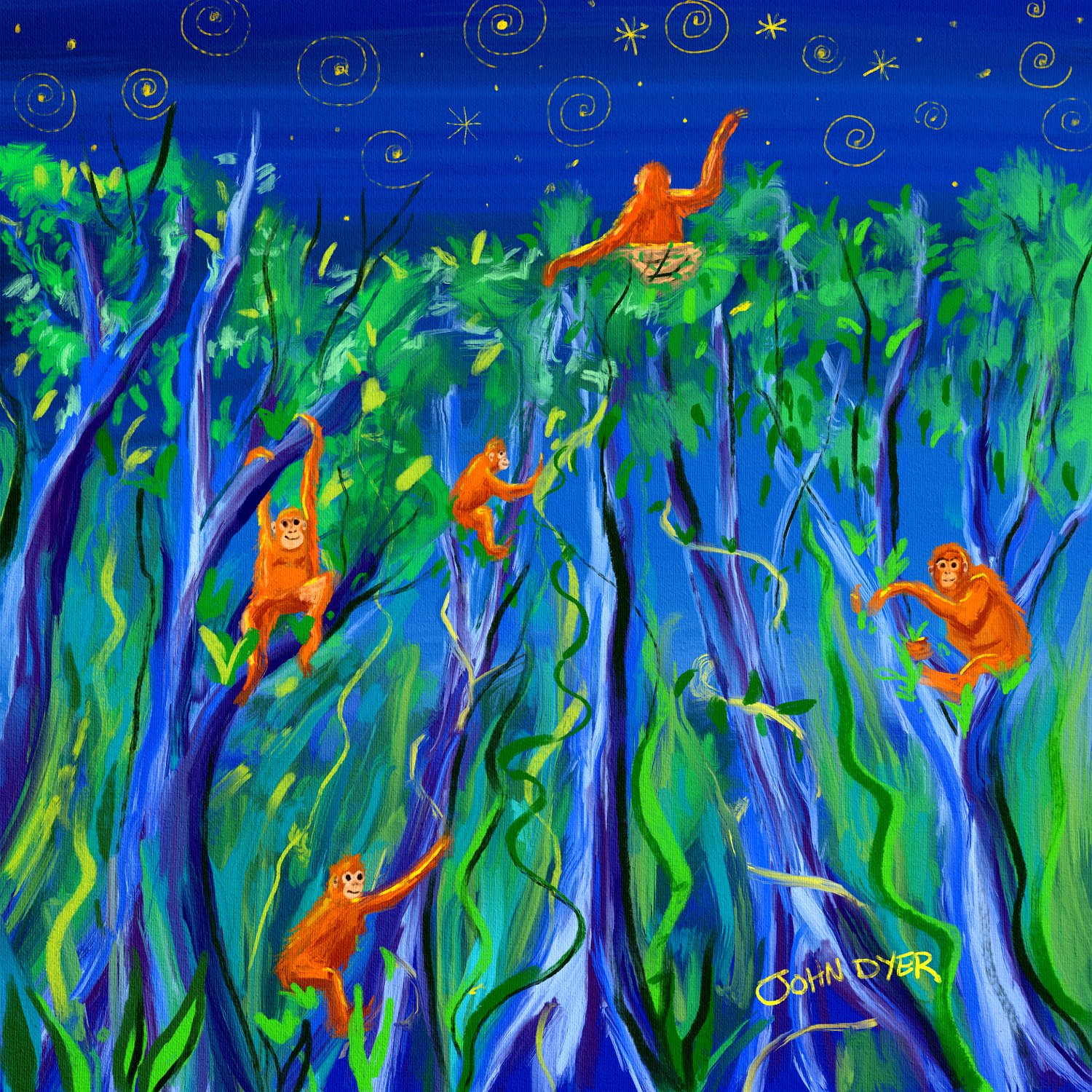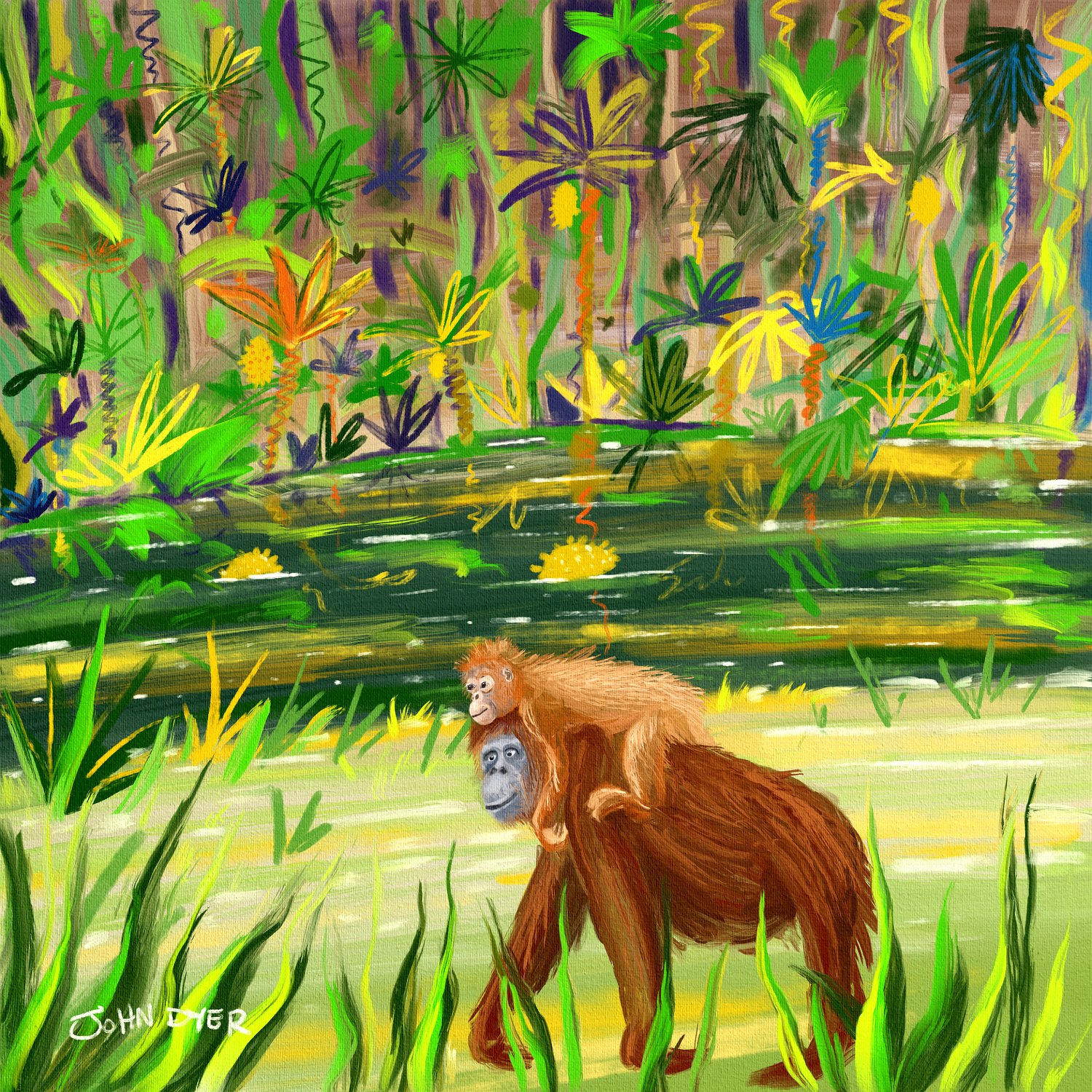 'Person of the Forest' iPad drawing using Procreate by artist John Dyer Orangutan 1 Orangutan 2 Orangutan 3 Orangutan 4 Orangutan 5 Acrylic Paintings