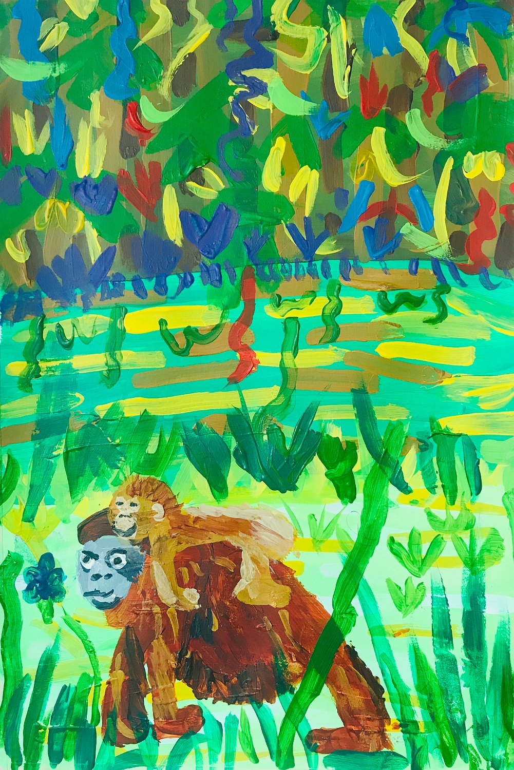 Laurie-Bradley age-7 Orangutan-Mother-and-Child 50x40cm-Acrylic-Paint-on-canvas UK