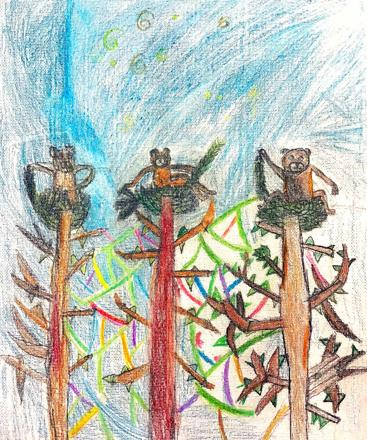 Sewerin-Jozwiak-6-Borneo-Orangutans-A4-colour-pencils-on-canvas-Southwold-primary-school-london-UK