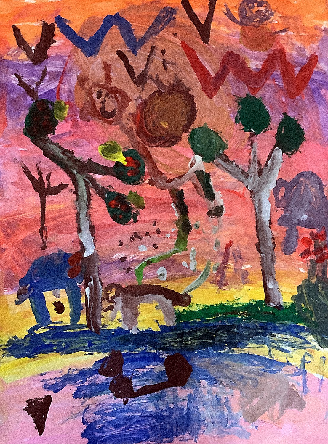 Imogen Jones Age 5 Kenya A4 paper Logan Trevor Age 5 Animal Sunset Paint on A2 Paper Henry Burrage Age 5 The Giraffe Paint on A2 Paper Age 6 to 8