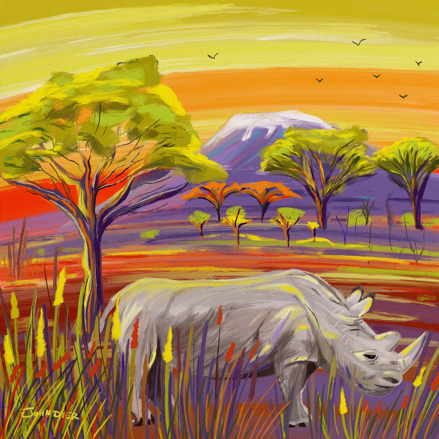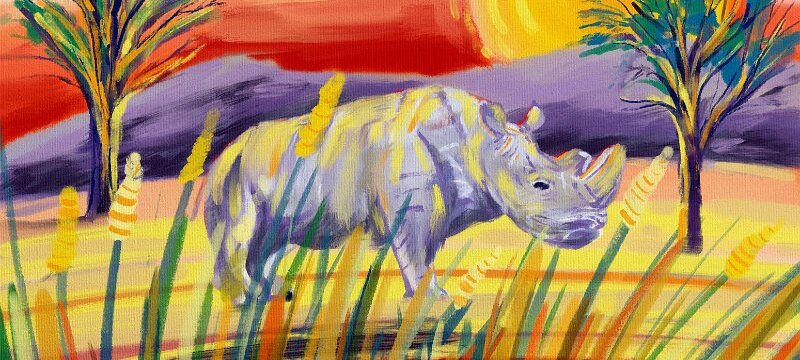 'Savannah Rhino' iPad drawing using Procreate by artist John Dyer