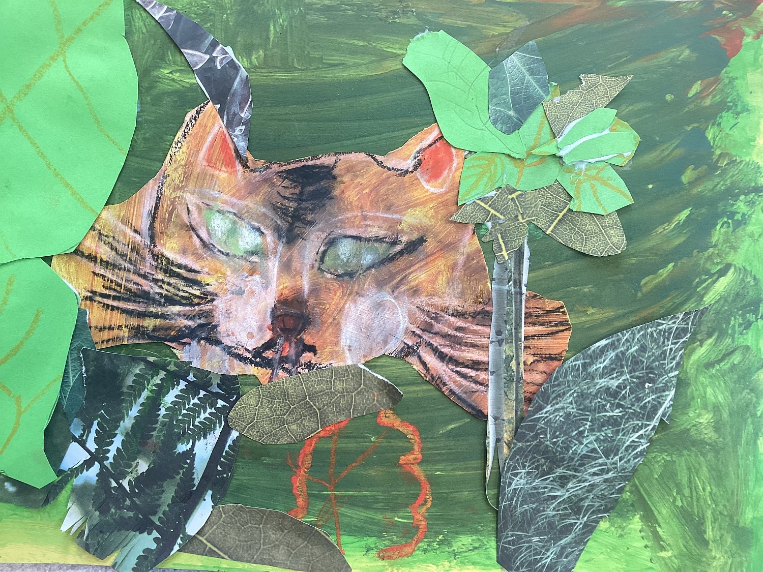 Indie-Rose Cooper 7 Tiger in India, Trythall School, Cornwall. Mixed media